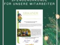 Auch unseren Mitarbeitern wollten wir eine besondere Freude machen: Nach dem Motto „Süßigkeiten gab es gestern, heute gibt es Charity“ bekamen 110 Mitarbeiter eine Urkunde, in der sie in ihren Namen einem Kind einen Tagesausflug ermöglichen.
